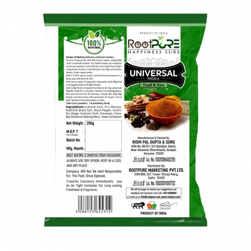 - One Spice Fits All: Rootpure Universal Masala is the answer to your culinary needs, a versatile blend that easily enhances the flavor of any dish. From curries to stir-fries, this is the one spice you need for culinary excellence.
