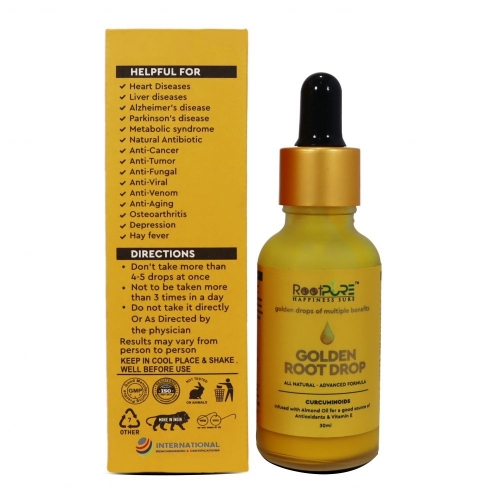 Golden Root Drops is a powerful health supplement that addresses various aspects of wellness. This unique formulation is designed to reduce issues associated with metabolic syndrome including heart disease, stroke, diabetes, and obesity. Rich in curcumin, Golden Root Drops exhibits potential cancer-preventive properties by inhibiting the growth of cancer cells in the body. Additionally, it proves to be highly beneficial in curing various stomach and digestive-related diseases. Boost your health and vitality with Golden Root Drops, a holistic solution that contributes to overall well-being.