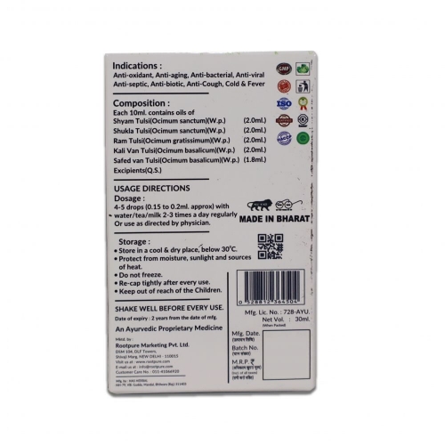 - Immunity Booster: Upgrade your body's defense mechanisms with the strong immunity-boosting properties contained in Panch Tulsi Drop.