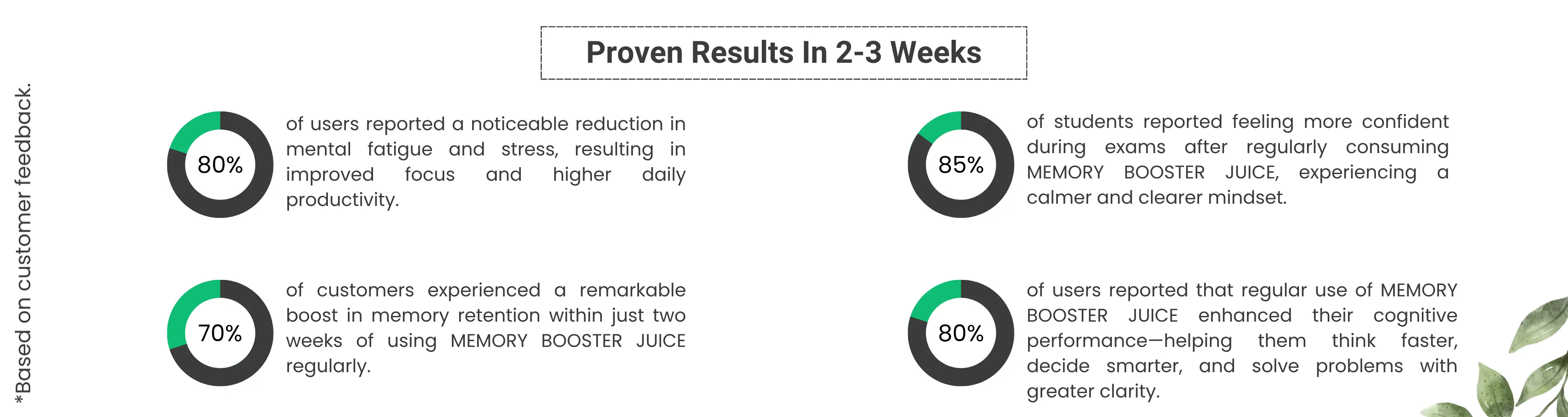 - Stress and Fatigue Reduction: Memory Booster effectively removes mental fatigue, reduces mental confusion, and provides relief from stress, creating a mental environment conducive to well-being.